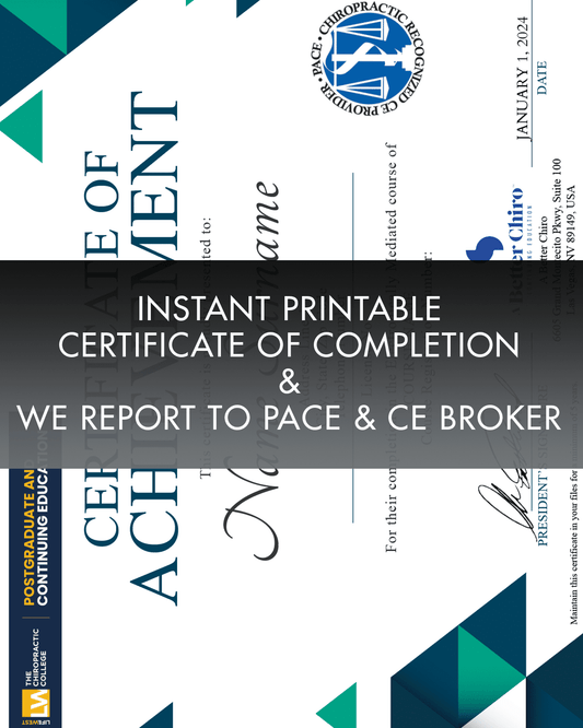 A Better Chiro continuing education is administered by Life Chiropractic College West, an accredited CCE College, and offers an accredited certificate of completion and automatic board reporting with every course.